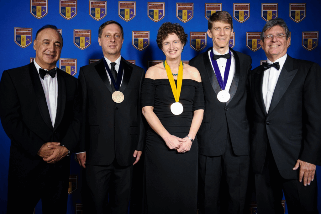 From left: Len Blavatnik, Founder of the Blavatnik Family Foundation; Marin Soljačić, 2014 Blavatnik National Awards Laureate; Rachel Wilson, 2014 Blavatnik National Awards Laureate; Adam Cohen, 2014 Blavatnik National Awards Laureate; and Ellis Rubinstein, President Emeritus of The New York Academy of Sciences.