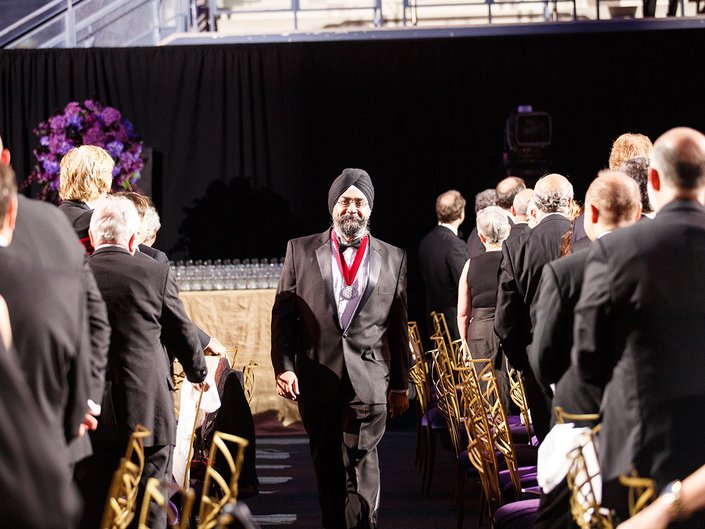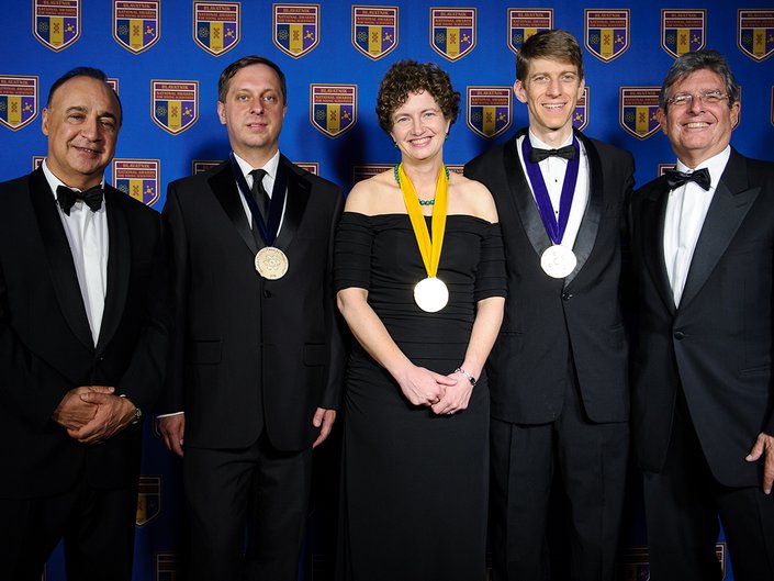 The three National Laureates: Dr. Rachel Wilson, Dr. Marin Soljačić, and Dr. Adam Cohen were introduced during the evening by Dr. Cornelia Bargmann, Dr. Robbert Dijkgraaf, and Nobel Prize Laureate, Dr. Martin Chalfie, respectively.  Each Laureate received a gold-plated custom medal from Len Blavatnik and followed with a presentation about their award-winning work.