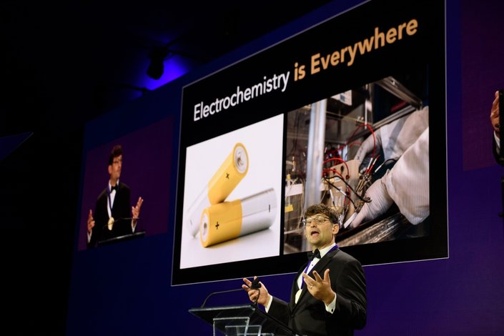 2023 Blavatnik National Awards Laureate in Chemistry, materials chemist Shannon Boettcher, from the University of Oregon, spoke about his discoveries in electrochemistry which are enabling new sustainable methods to create fuels, plastics, fertilizers, and other important chemicals.