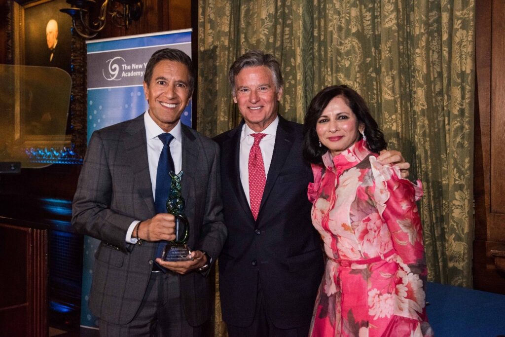 Multiple Emmy®-award-winning Chief Medical Correspondent for CNN and practicing neurosurgeon, Sanjay Gupta, MD, was honored with the Academy’s Science Communicator Award for translating complex medical science into accessible, trusted insights, including during natural disasters and global health crises. Dr. Gupta’s mentor and colleague, Dan Barrow, MD, who serves as The Pamela R. Rollings Professor & Chairman of the Department of Neurological Surgery at Emory University School of Medicine, conferred the award. Speaking to Gupta’s two-decade history of health and medical reporting for CNN, Dr. Barrow said, “It’s a strange thing to introduce someone who has already introduced himself to the entire country.” Barrow highlighted Gupta’s rare ability to connect science and the public, “He understood something that far too many science communicators never quite figure out: the goal isn’t to impress. It’s to illuminate!”