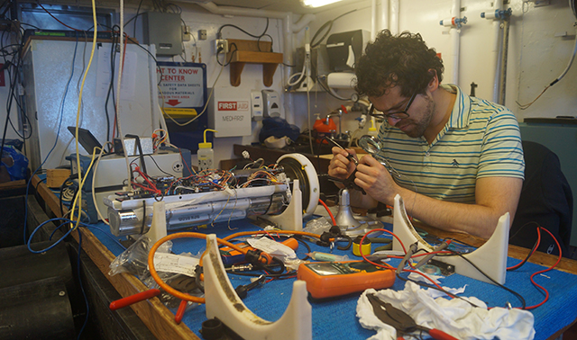 Carlos told us, “We [at the Ocean-Bottom Seisomology Lab] are a team of scientists and engineers that develop and operate cutting-edge instrumentation utilized in seismic ‘hot-spots’ located under the world’s oceans, sometimes as deep as three miles under water. In broad terms, the data we record aims to explain the mechanics of how the Earth is put together, at mapping the sub-seafloor, highlighting hidden faults and other earthquake hazards.”