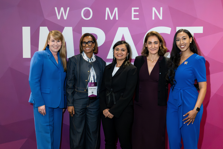 Panel moderator Brooke Grindlinger (The New York Academy of Sciences, left) with Kamilah Thomas, Jyoti Shah, Rafif Srour Daher, and Ashley M. Scott at the 2025 Women Impact Tech Accelerate Conference.